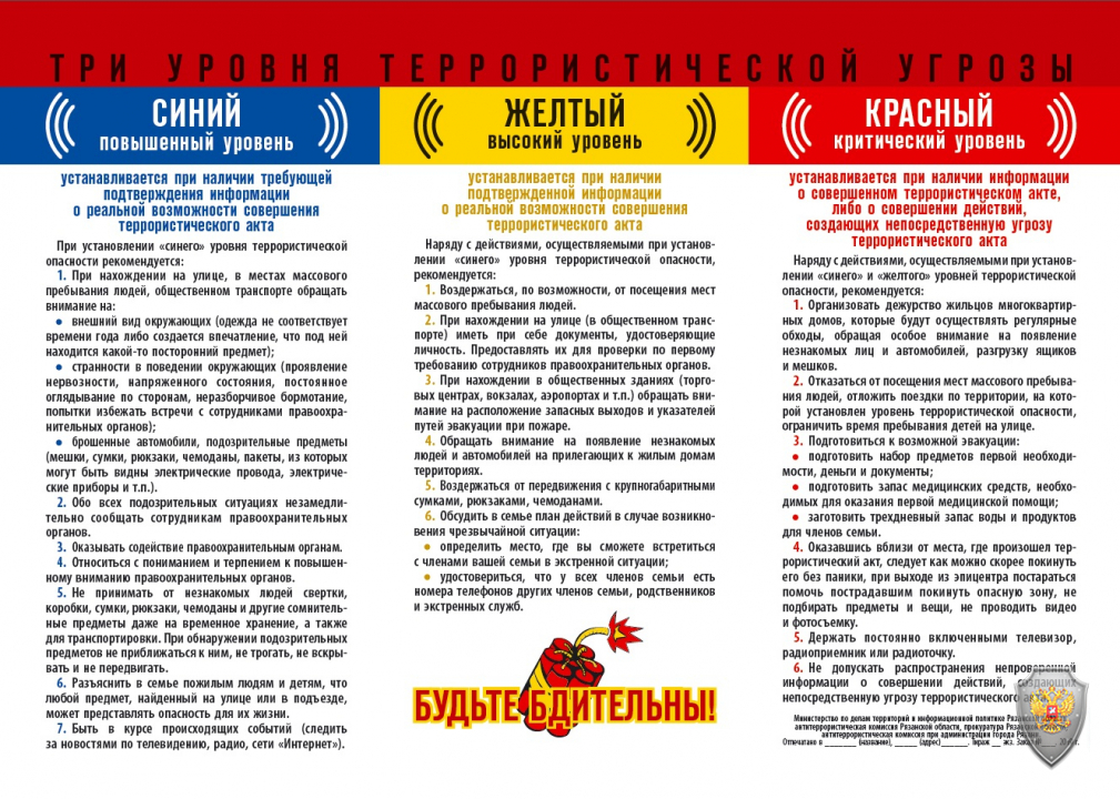 Памятка. Три уровня террористической угрозы.